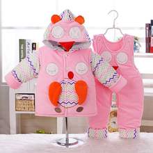 婴儿棉衣冬装加厚马甲三件套装外套0-1-2岁男女宝宝冬季背带裤服
