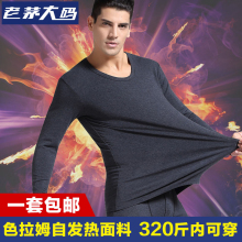 大码男士内衣色拉姆自发热保暖套装肥佬秋衣秋裤打底棉毛衫棉毛裤