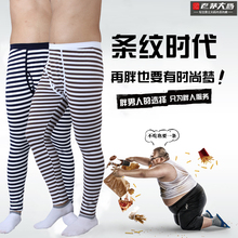 男士秋裤加大加肥条纹高腰棉莱卡单件肥佬薄款修身打底大码线裤男