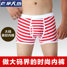 大码宽松夏季男士平角裤肥佬纯棉青年加肥加大条纹内裤性感内裤男