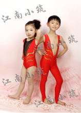 幼儿跳舞蹈少儿童表演出服装儿童体操服健美服红色男女连体短袖款