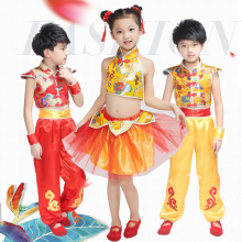 六一儿童民族秧歌服 肚兜腰鼓舞服龙凤打鼓服锣鼓龙舟舞台表演服