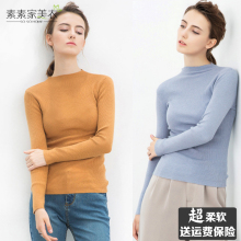 EAL秋冬高领长袖打底衫女装修身套头针织衫纯棉百搭贴身保暖毛衣