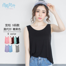 夏宽松大码运动上衣胖mm外穿吊带背心女纯色打底衫莫代尔无袖T恤