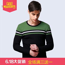 三针内衣舒绒莱卡加厚不加绒彩条圆领保暖内衣套装 男士秋衣秋裤