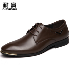 耐宾商务正装皮鞋新郎鞋婚鞋英伦尖头牛皮流行男鞋春秋季鞋子