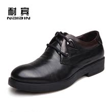 耐宾男鞋秋季潮鞋 男士休闲皮鞋英伦真皮潮流圆头系带单鞋子