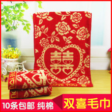 喜庆红色纯棉喜字毛巾批發 婚庆/结婚全棉结婚礼品双喜回礼毛巾