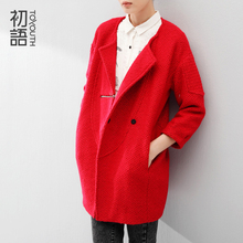 初语毛呢外套女 大码宽松休闲百搭简约中长款呢大衣