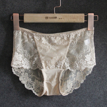 天然桑蚕丝女士针织真丝三角裤中腰舒适无痕内裤臀部性感蕾丝花边