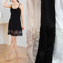 新款性感桑蚕丝针织真丝吊带裙衬裙蕾丝花边打底裙长睡裙连衣裙夏