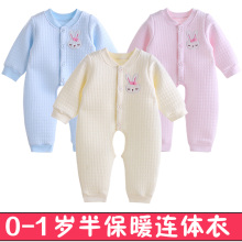 婴儿长袖哈衣春秋爬爬服新生儿保暖连体衣夹棉加厚宝宝衣服秋冬装