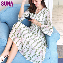 Suna/尚纳2017春夏新款时尚印花百搭淑女气质女款连衣裙