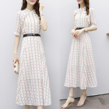 名媛雪纺连衣裙短袖女2017新款夏季时尚小清新修身韩版中长款裙子