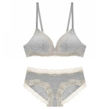 新款欧美小胸性感内衣蕾丝边上薄下厚聚拢文胸套装深V美背胸罩