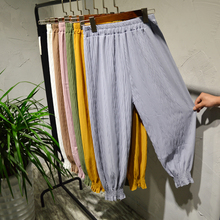 韩版松紧高腰宽松纯色雪纺百褶阔腿裤女夏季九分休闲百搭裤裙子薄