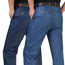 春夏中老年薄款男士商务牛仔裤高腰直筒弹力棉免烫抗皱宽松男裤