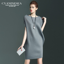 海青蓝2016秋装新款欧美潮流褶皱一步裙圆领无袖宽松连衣裙女2464