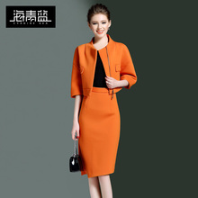 海青蓝2017春装新款通勤时尚外套两件套修身包臀一步裙套装女8286