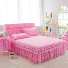 公主单件夹棉床裙三件套特价 加厚加棉蕾丝床罩 纯色床笠保护套