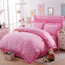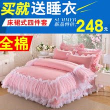 韩版公主纯色蕾丝床裙床罩式四件套磨毛花边被套床套多件1.5/1.8m