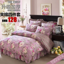 全棉全套夹棉花边床裙四件套纯棉加厚冬被套床罩床笠床上用品特价