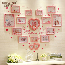 森图亚 照片墙 心形 相框墙 欧式实木客厅相片墙创意组合摆台装饰