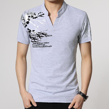 督森2017夏装新款男士短袖T恤男短t潮v领有加肥加大码印花T恤宽松