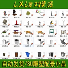 SU公园广场园林景观小品雕塑垃圾桶模型素材库草图大师sketchup