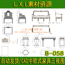 CAD中式欧式古典家具桌椅子床三视图平立面图库素材室内AutoCAD
