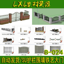 SU室外护栏围墙围栏铁艺大门模型素材草图大师sketchup景观模型3d