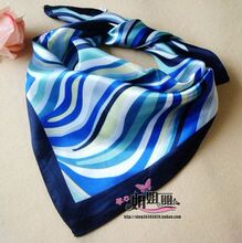 蓝色条纹银行空姐酒店移动礼仪工作服职业装小方巾丝巾女春秋韩版