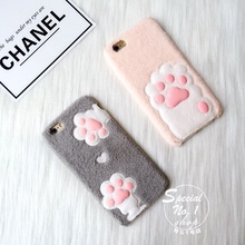 韩国代购毛绒猫爪苹果6s手机壳iPhone6/7plus硅胶套可爱防摔潮女