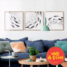 星川客厅装饰画三联现代简约水墨新中式壁饰沙发墙画千鱼百鲟