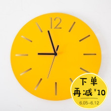 客厅挂钟创意石英钟静音简约铁艺糖果色圆形电子时钟黄早安钟表