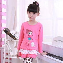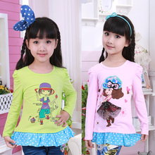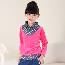 泽旭 童装女童长袖T恤纯棉女童T恤圆领韩版女童打底衫