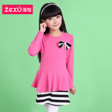 泽旭女童长袖t恤儿童体恤女宝宝春秋打底衫童装大童中长款上衣