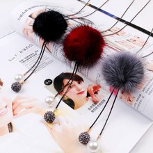 韩国秋冬长款装饰项链水貂毛毛球流苏毛衣链女配饰品长款挂坠百搭