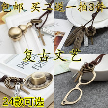 复古文艺牛皮绳锁眼镜卡通机器人算盘口哨吊坠挂件毛衣链长款项链