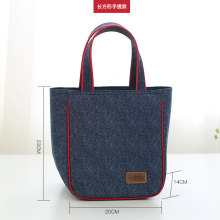 都来绣加厚带饭手提饭盒袋大号牛仔布防水便当包保温袋学生午餐包