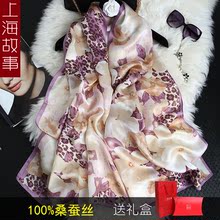 上海故事正品真丝丝巾大方巾100%桑蚕丝高档披肩女式围巾杭州丝绸
