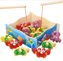 儿童木制磁性3D立体磁铁钓鱼 早教玩具1-6岁益智磁性钓鱼 包邮