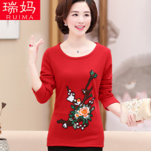 中老年女装春装老年T恤大码中袖40-50中年雪纺衫妈妈打底长袖上衣