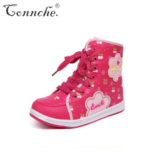 connche童鞋 儿童运动鞋秋冬款中帮女童休闲鞋旅游鞋加绒保暖