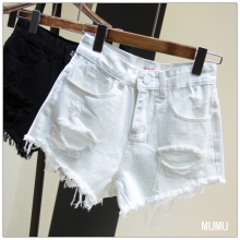 高腰牛仔短裤 女 韩版 潮 夏 破烂 磨破 破洞 热裤显瘦
