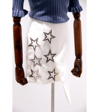 春金属手工缝星星不规则开叉半身裙高腰包臀短裙子潮女装春季黑色
