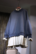 抓绒加厚秋冬学院风木耳边百褶下摆中长款宽松大版卫衣娃娃连衣裙
