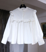 包邮秋冬小清新甜美木耳边学院风宽松娃娃衬衫上衣女
