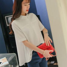 2017夏季新款韩版帅气燕尾雪纺衬衫时尚百搭女装 个性韩版