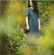包邮DAZHUO大拙耸拉肩袖气质款天然环保酵素染棉麻连衣裙60716